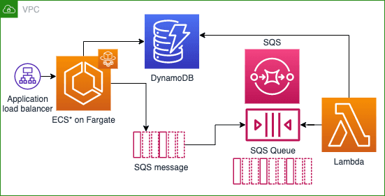In the first part of my project, I used CDK to create an ECS Fargate cluster, an API gateway to respond to requests, a Lambda to perform Strand logic and return outcomes, an SQS queue to respond to requests, and a DynamoDB instance to store results.