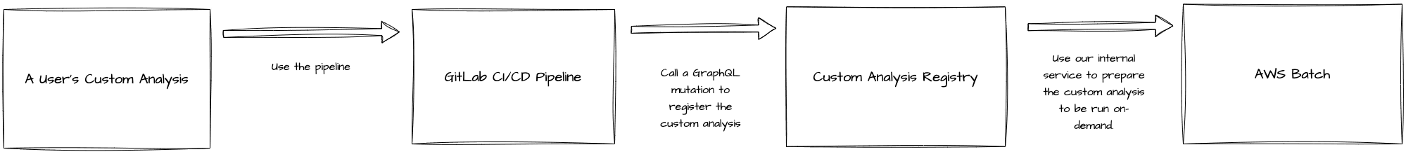I created a Django app that, essentially, keeps track of registered custom analyses. The registration process was handled using a Gitlab CI/CD pipeline in the CAR that could be imported and used in a custom analysis. Once that was done, the pipeline would make a request to register the custom analysis to the registry. The CAR would also do some prep work to set things up in AWS Batch, allowing us to run custom analyses on-demand. This allowed us to keep track of the custom analyses at Ginkgo and make the custom analysis development process much better!