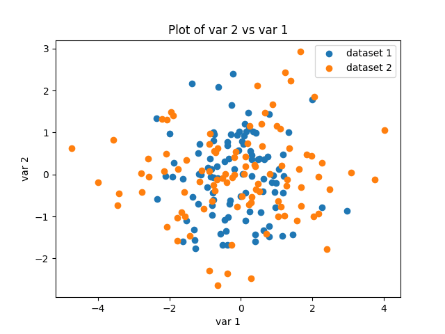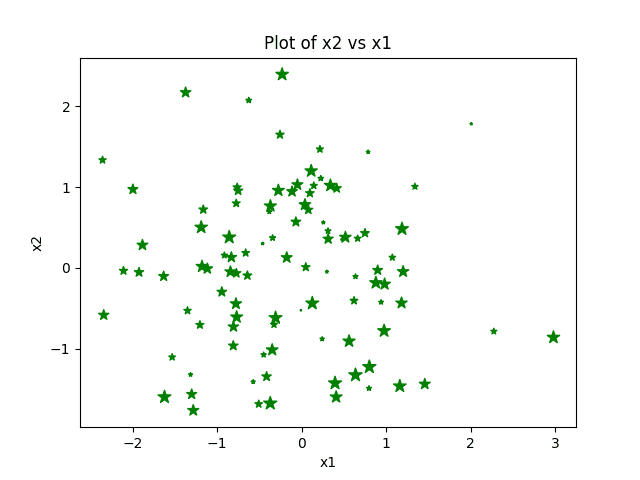 For a scatter plot, we can use keyword arguments to change the colors, size, and type of marker as well as adding axis labels and a title. When adding the size, we’ll generate another variable set of numbers with the same length as the dataset arrays.