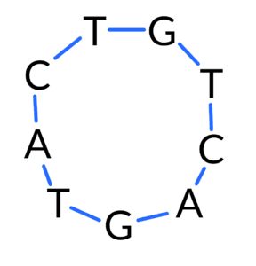 First, some biological context. If a software engineer with no background in biology (which described your humble author four years ago) were to think about how they would represent DNA in a computer program, they would probably want to store it as a string of A, C, G, and T characters. That’s a good first approximation, and it’s basically how we store linear strands of DNA molecules for things like a gene. However, some DNA molecules are circular, which you can imagine creating by taking a linear strand of DNA and joining the end to the beginning, something like this: