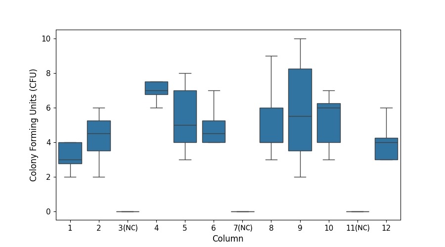 Our post-outgrowth analysis, following three days of colony outgrowth, confirmed the absence of cross-contamination in the negative control columns and no overall contamination in the positive control columns (Fig 7).
